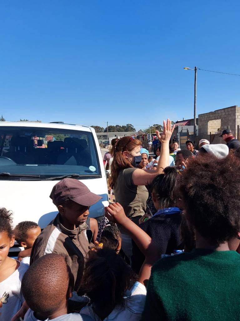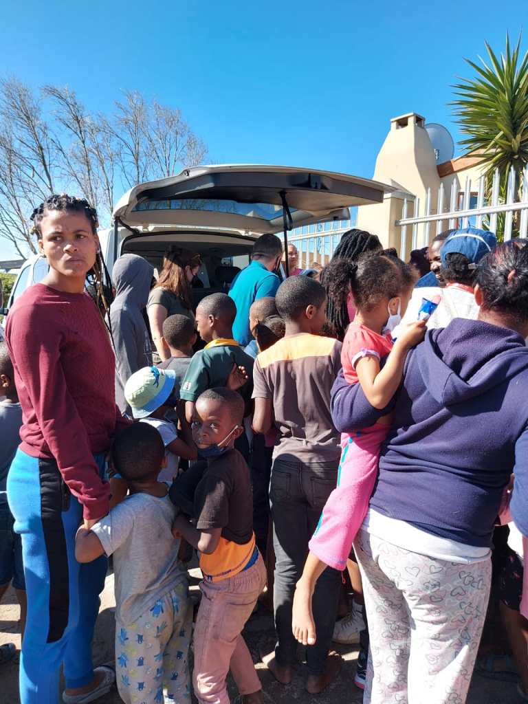We hadden aangegeven graag eens mee te gaan op zo’n uitdeeldag…..gisteren was het zover. We spraken af in het centrum van Durbanville waar Thinus, Barbara en dochter Beulah ons ophaalden. Thinus: “We gaan naar Fisantekraal, dat is het township waar Cristiano vandaan komt. We nemen hem niet mee want dat kan voor een ongewenste situatie zorgen.”