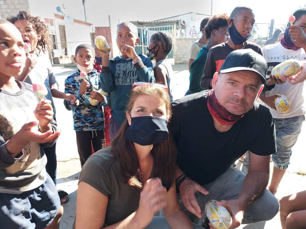 Even later maakte Marike zich druk om andere zaken: “Ik weet niet of dit qua corona zo handig is. Die kinderen met die snottebellen…..ze zitten toch aan je. Laten we ons goed wassen…..” Willem snapte het wel maar was vooral even stil vanwege het gehele tafereel. Hij glipte even een stenen huisje binnen, voor deze contreienbegrippen een soort van villa, en zag een oud mannetje tevreden naar de tv kijken. Een foto maken was geen probleem. Een selfie? Zijn blik verraadde zijn gedachten: “Als jij dat wil.” Het zag er binnen eenvoudig maar schoon en netjes uit. “Kom, we gaan nu even naar de nog mindere zijde van Fisantekraal”, hoorden we Thinus roepen. Even later reden we door een soort van vuilnisbelt waar de verharde weg was opgehouden. Een soort van tractorspoor, omrand door gore troep, vervallend houten palen en verwilderd kijkende mensen. Willem wilde een foto maken toen we op een kruising kwamen. “Kijk eens naar links, daar durven wij zelfs niet in. Voorheen deden we dat wel, maar het werd te gevaarlijk”, had Barbara ettelijke seconden eerder gezegd. Met een iphone in de hand zag Willem in zijn ooghoeken een vrouw naar hem roepen, haar mondhoeken bewogen wild op en neer, en hoewel geen volleerd liplezer was het bijkans niet te missen wat ze ongeveer wilde zeggen: “Als je hier foto’s komt maken met je dure phone dan flikker maar op. Kom maar op, rij die straat dan in lafaard…..als je durft.” Zoiets. Gelukkig reed Thinus snel verder…….ja, ze had gelijk: je bent dan een lafaard. Geen woord aan gelogen. Toch hadden we ook wel een keer iets goeds gedaan….alhoewel dat vooral voor Barbara en Thinus gold. We realiseerden ons dat zij dit ‘werk’ met grote regelmaat doen………respect met de capital R.